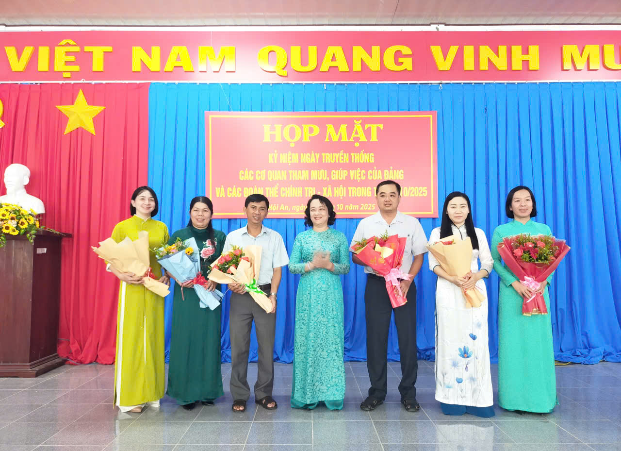 Sáng ngày 17/10/2025, Đảng ủy xã Hội An tổ chức họp mặt kỷ niệm ngày truyền thống các cơ quan tham mưu, giúp việc của Đảng và các đoàn thể chính trị xã hội trong tháng 10/2025. Đồng chí Nguyễn Thị Minh Kiều, Bí thư Đảng ủy xã chủ trì hội nghị.