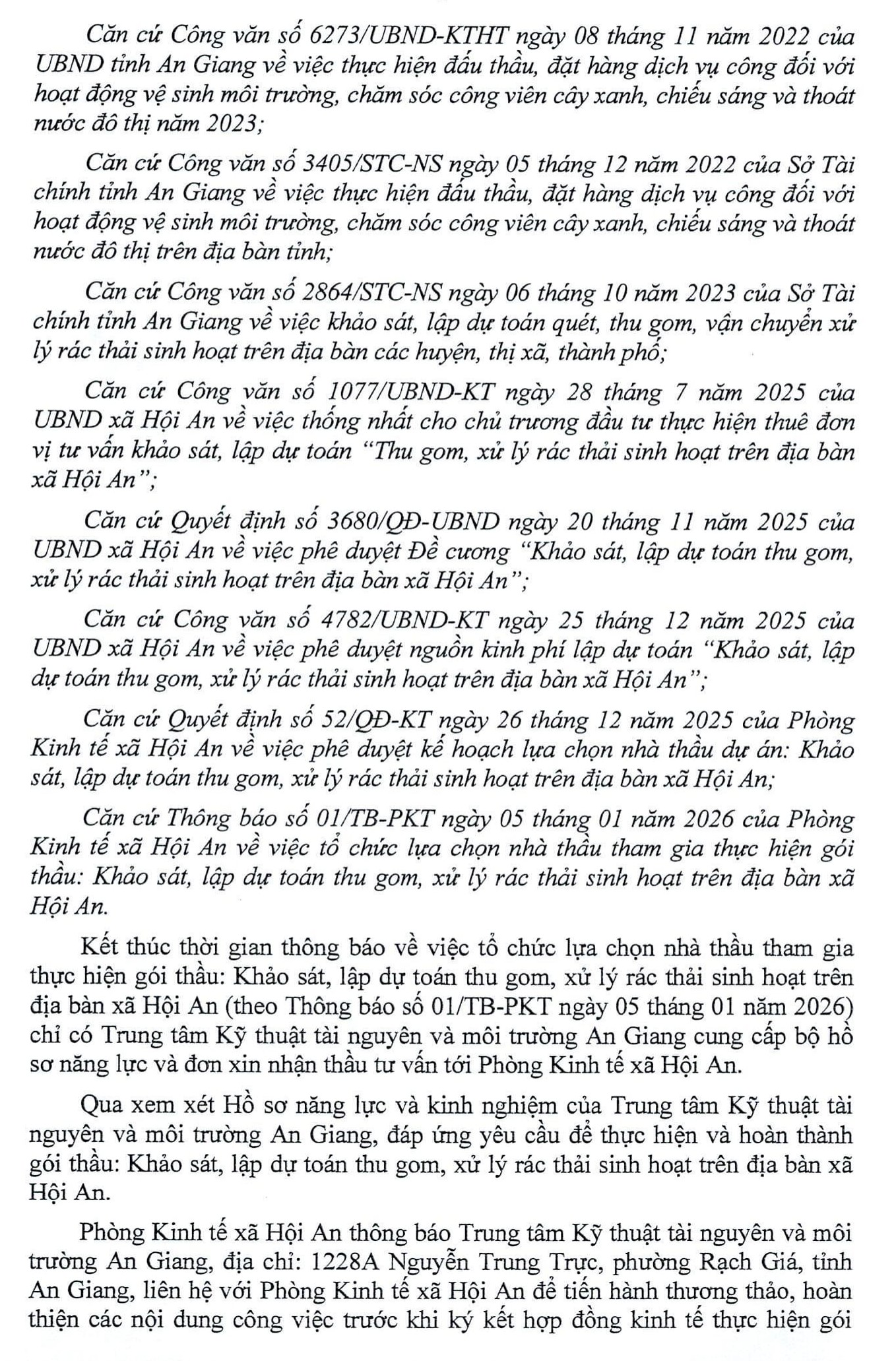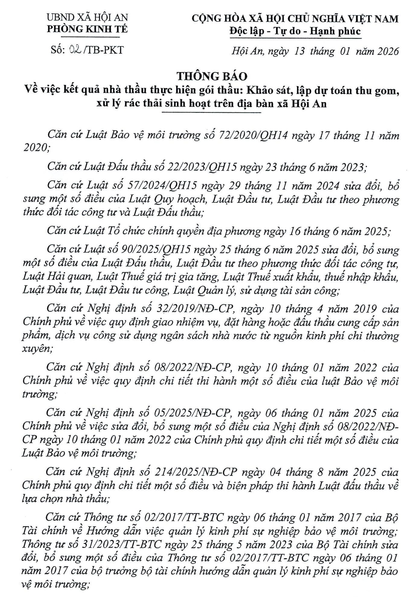 THÔNG BÁO