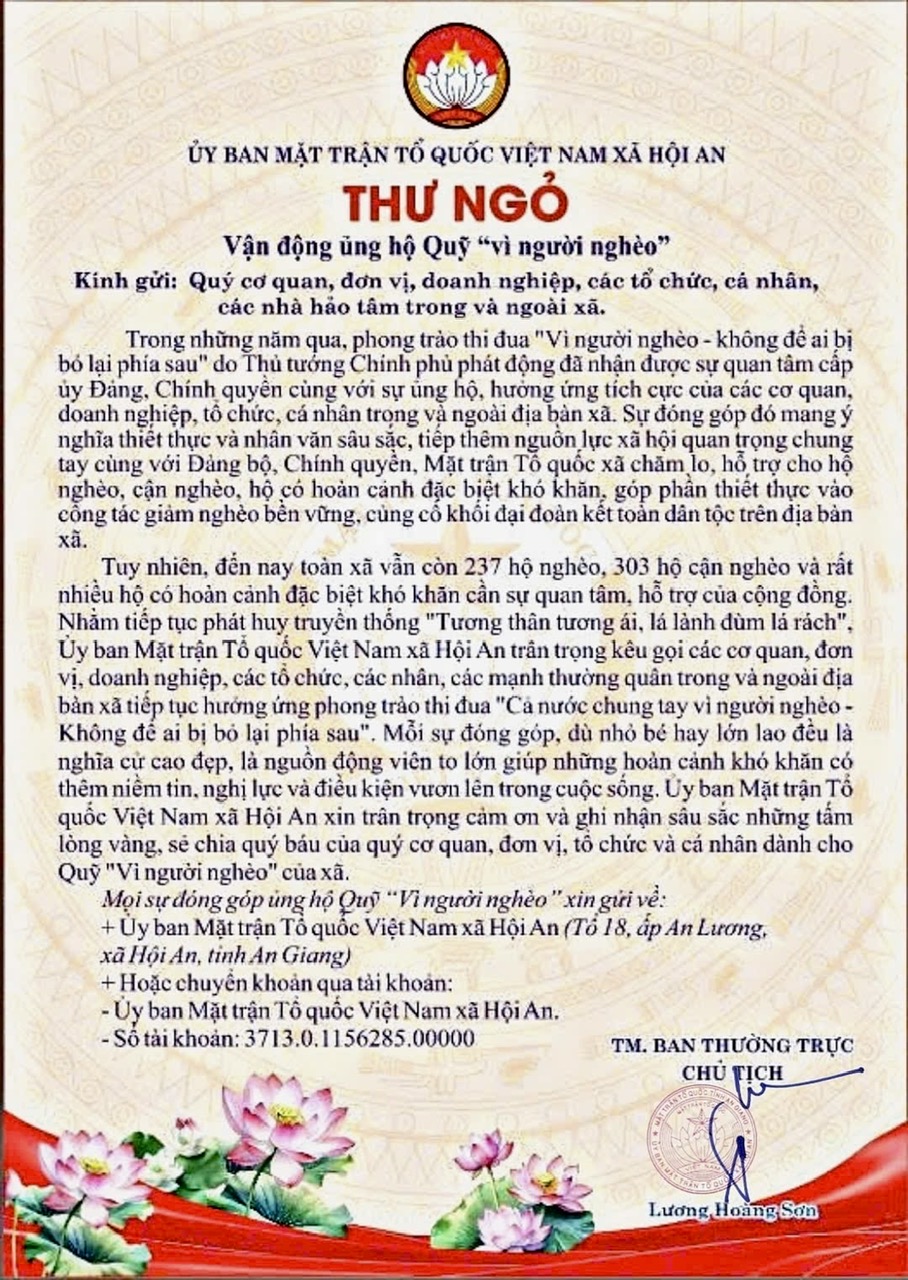 Thư ngõ Vận động ủng hộ quỹ "Vì người nghèo"